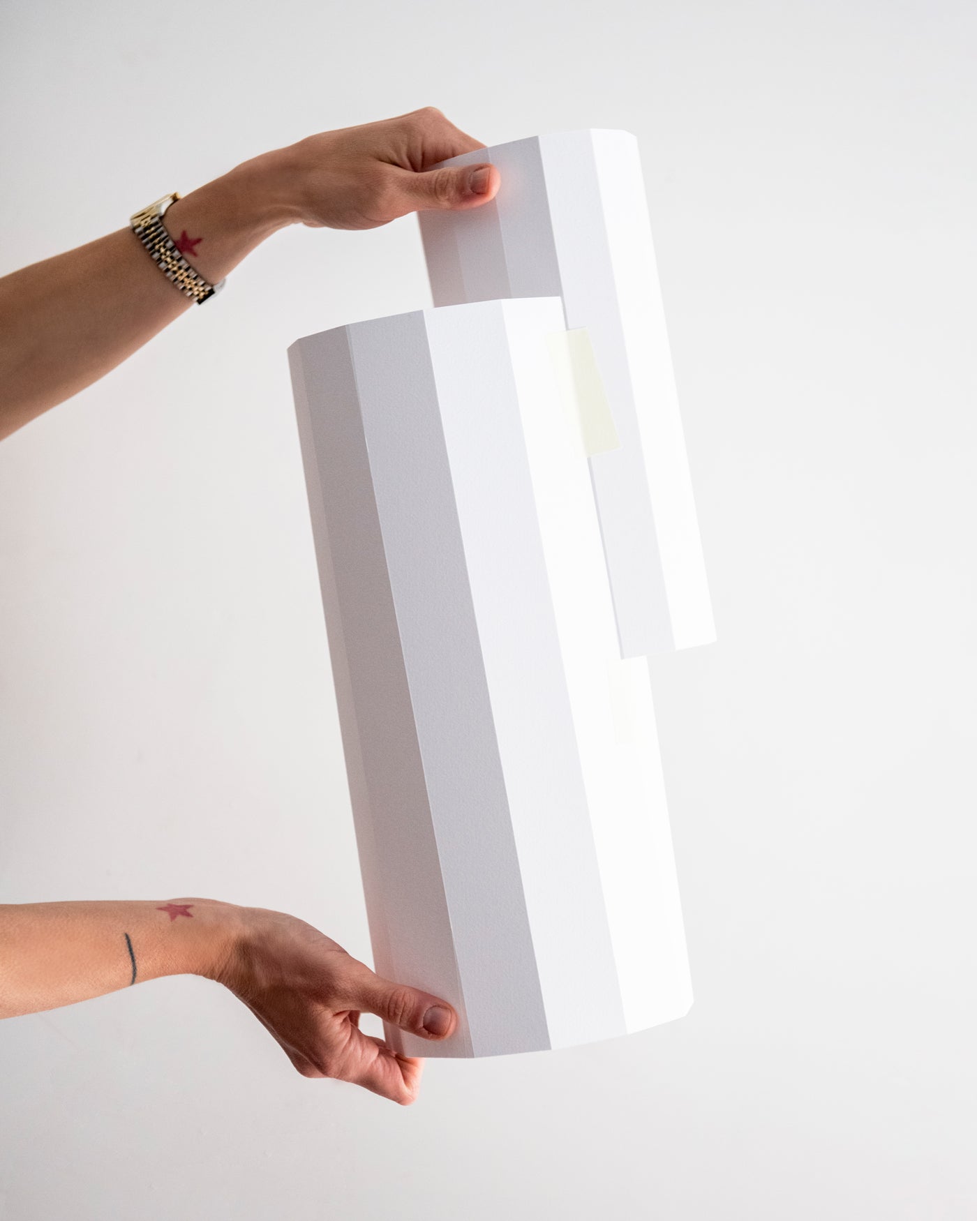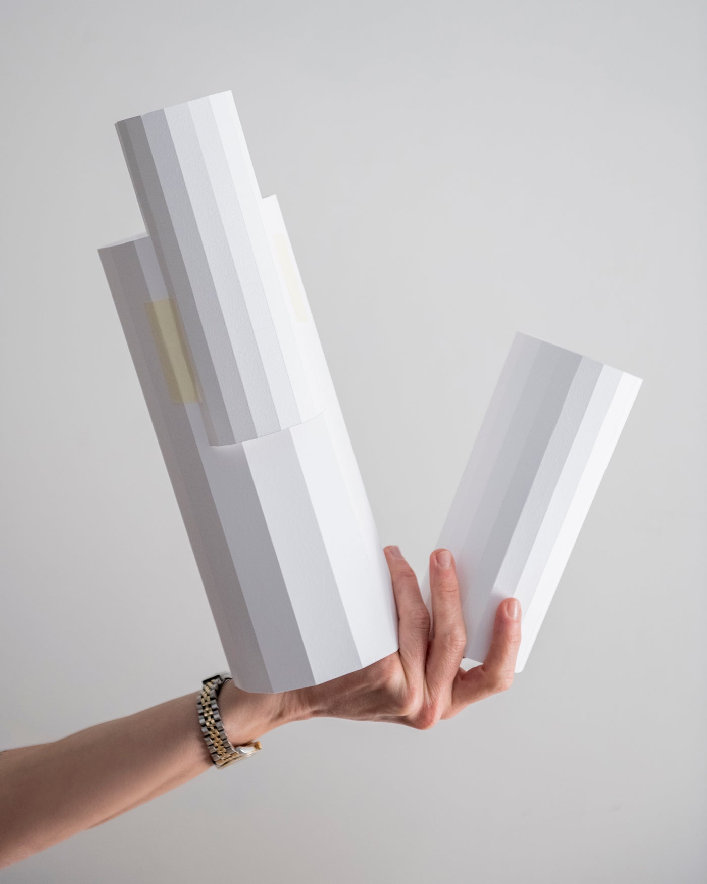 The project starts from a folding exercise. A paper-based technique is transposed into ceramic, preserving the tension and direction of each crease. Made in enamelled earthenware, the forms retain the rhythm of the original folds while adapting to a new material logic.