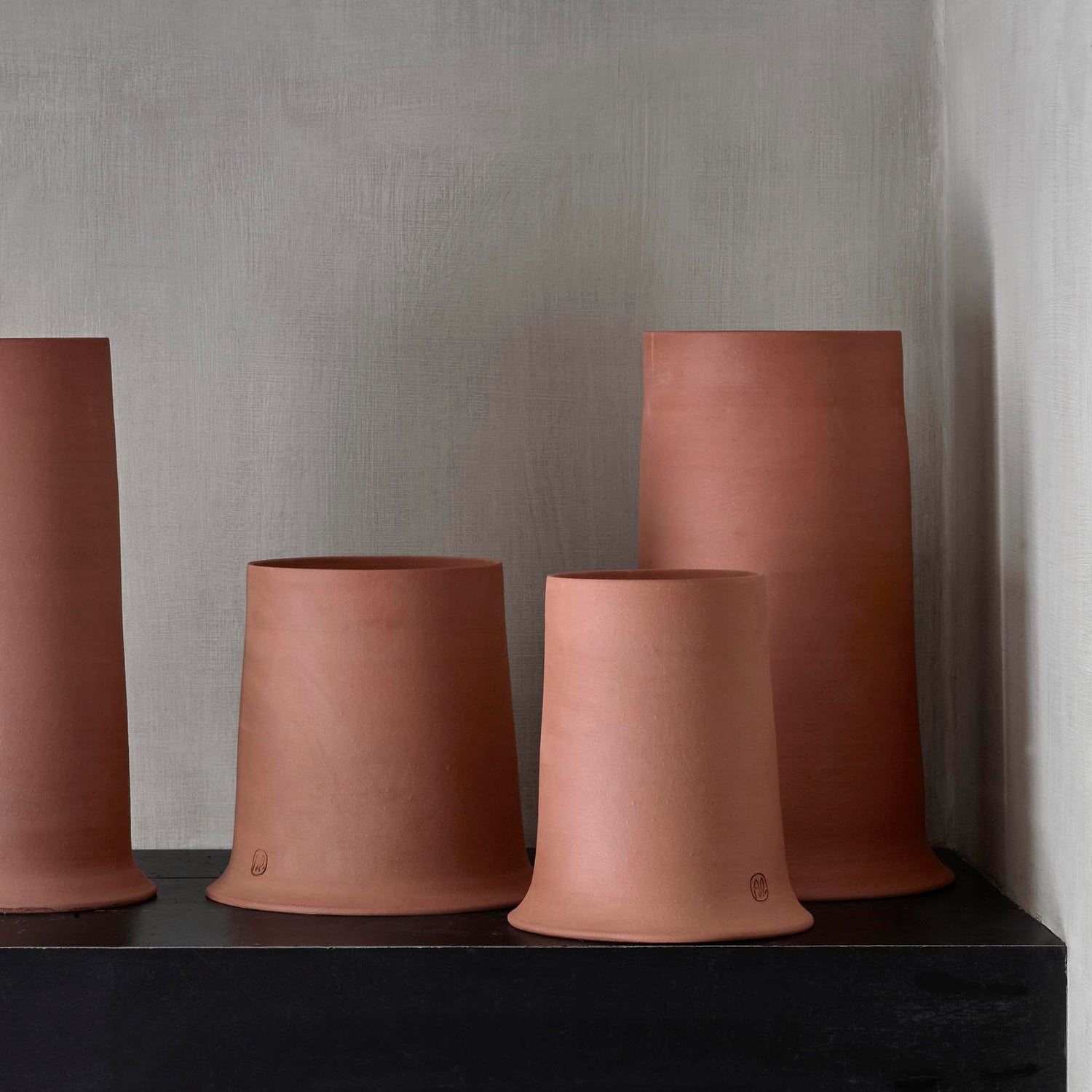 The collection borrows the form, material and dimensions of Parisian chimneys, shifting them from rooftop to interior. Removed from context, they become containers for domestic or outdoor use, echoing the skyline they come from.