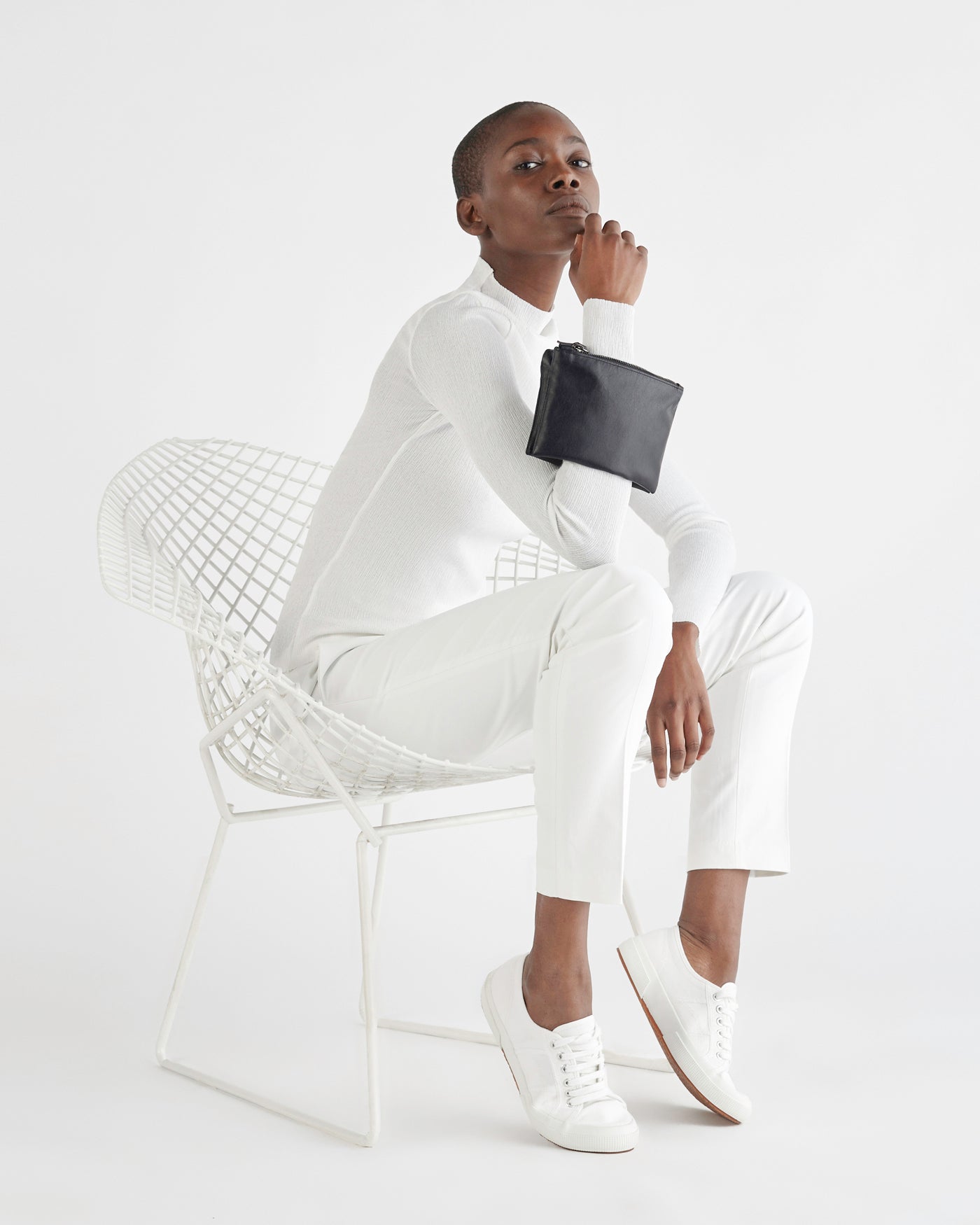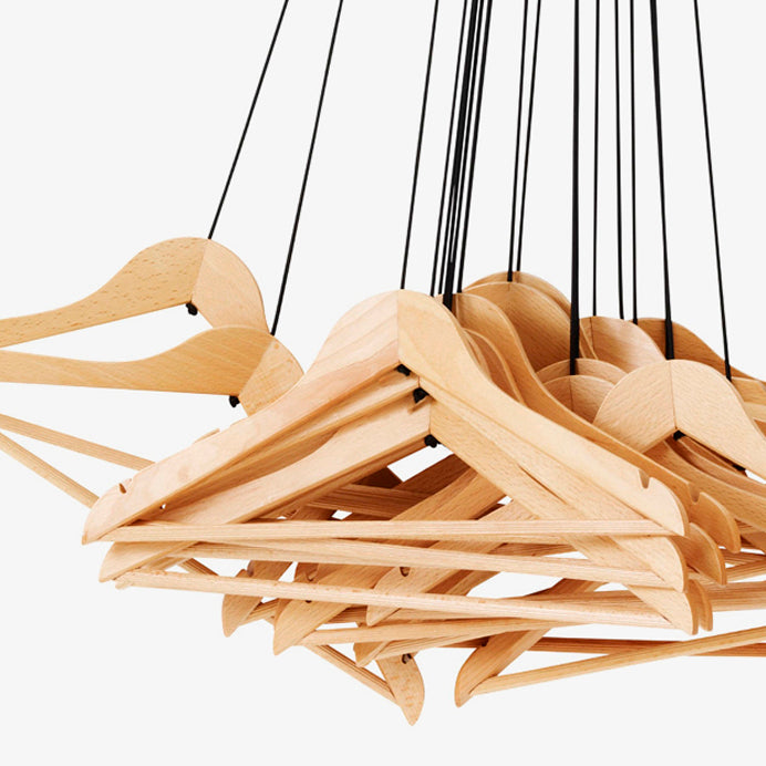 A wall shelf that plays with balance. Suspended from a single point, it tilts gently under weight, turning display into a quiet act of equilibrium. The structure is reduced to three elements: a curved solid ash plank, a steel hook, and a taut cord.