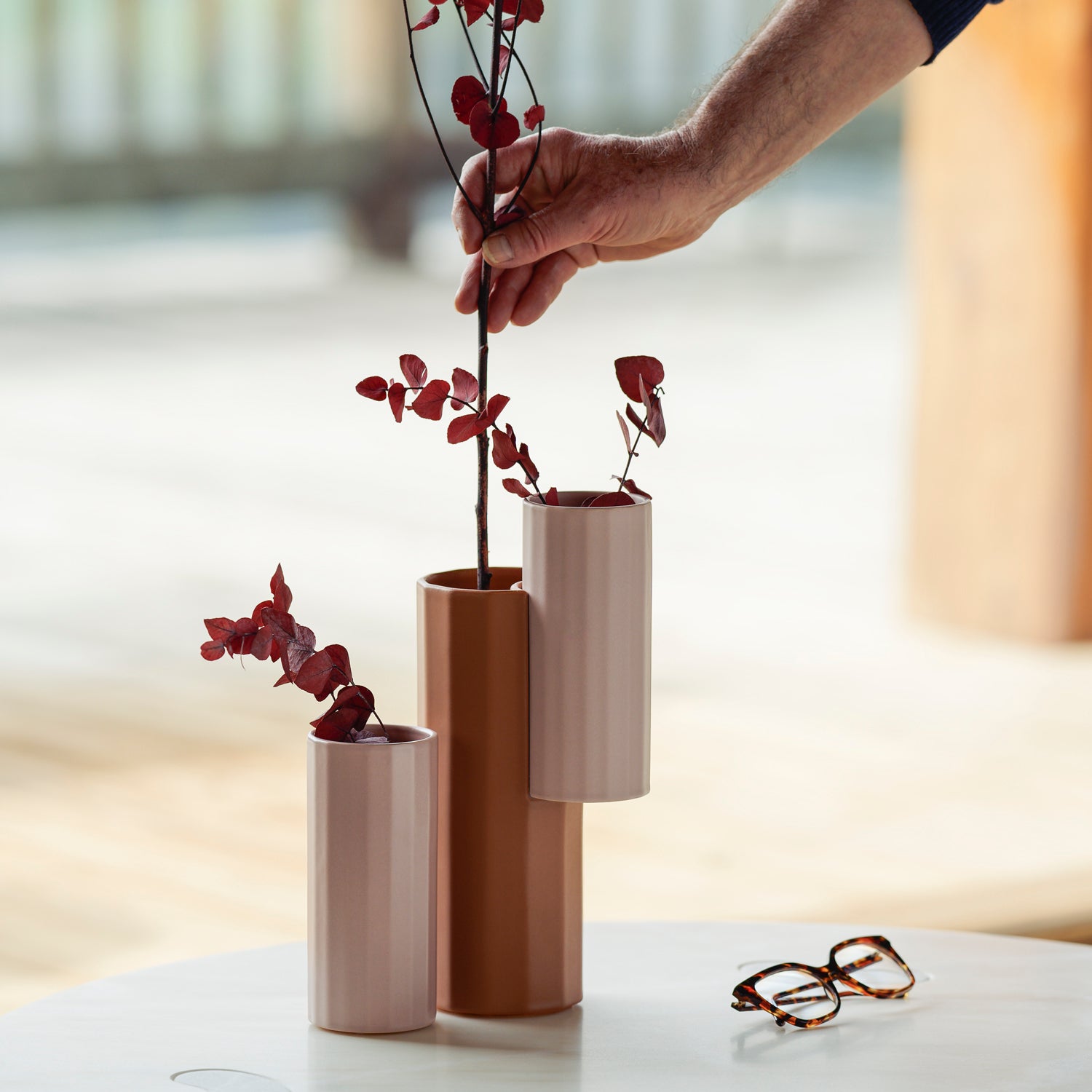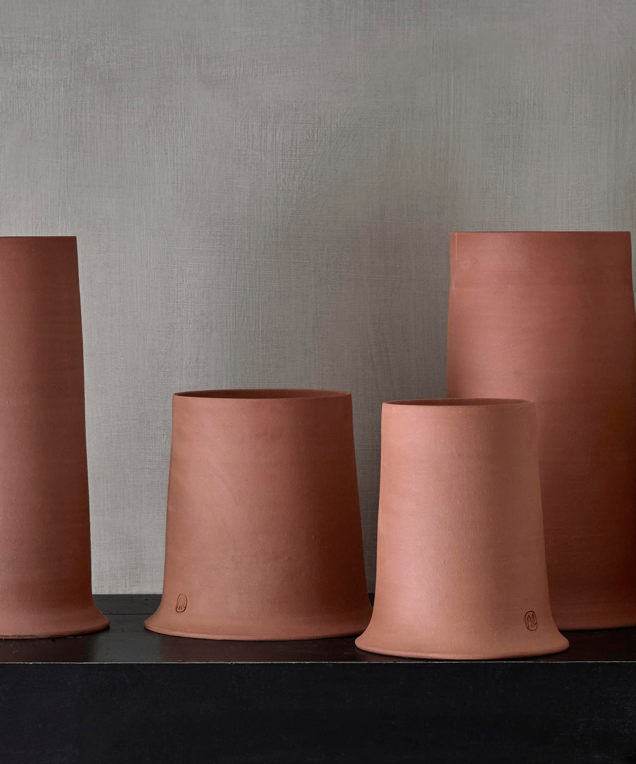 Large rattan jars handwoven in heart cane. Each piece varies in form and tension, shaped freely by the maker. The scale moves the object toward sculpture. Inspired by African basketry, the project links material, gesture, and manual construction.
